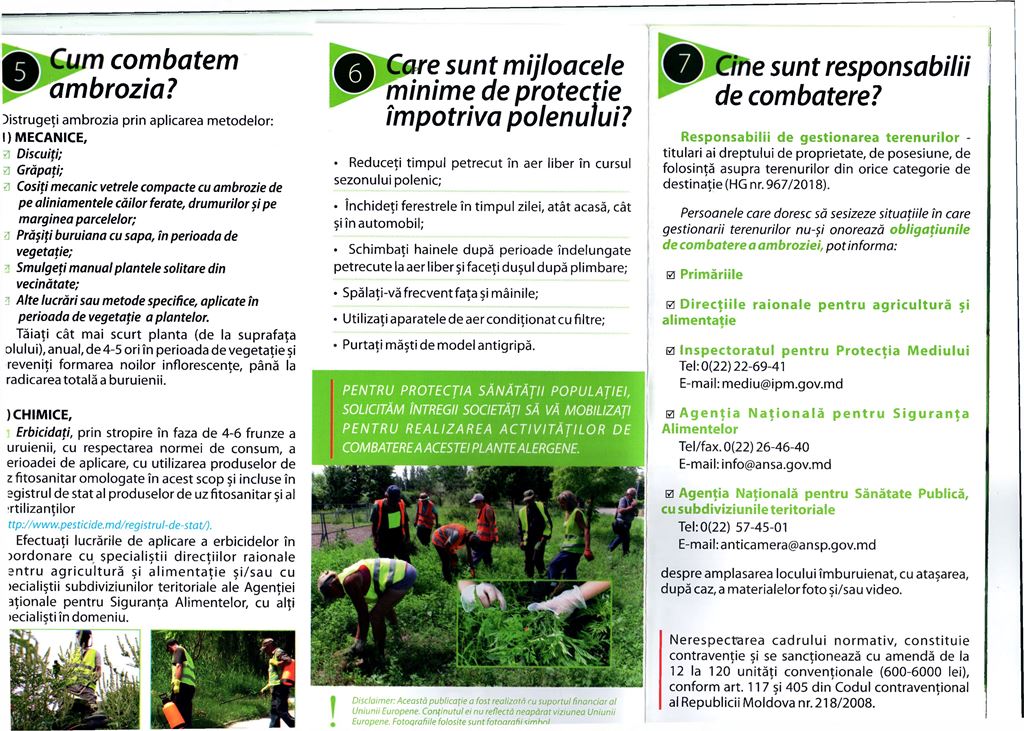 Ținînd cont de importanța întreprinderii măsurilor de combatere a buruienii periculoase, Ambrozia (Ambrosia artemisiifolia), la nivel național a fost aprobată Hotărârea de Guvern Nr. 967 din 03.10.2018 pentru aprobarea Regulamentului privind combaterea și prevenirea răspândirii buruienii ambrozia (Ambrosia artemisiifolia) și a Planului de acțiuni privind combaterea și prevenirea răspîndirii buruienii ambrozia pentru anii 2019-2024.