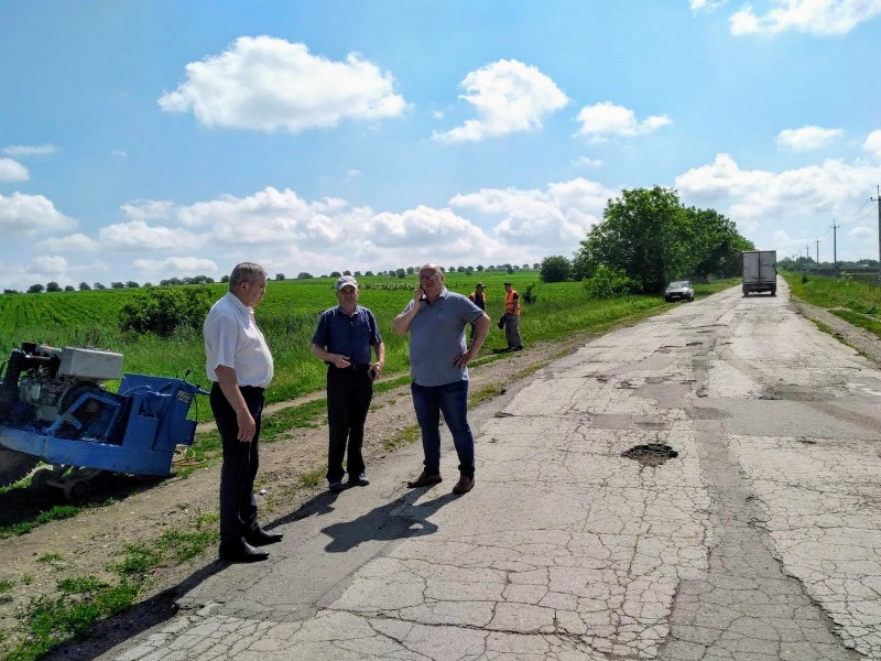 La data de 15 iunie curent, Domnul Mihai PRODAN, Vicepreședintele raionului, împreună cu Domnul Vasile PUIU, responsabil tehnic la lucrările de întreținere și reparație a drumurilor raionale și Domnul Constantin CUSCHEVICI, șeful Secției Gospodărie Comunală și Drumuri , reprezentanții Societății pe Acțiuni ,,Drumuri Bălți” au inițiat procedura de plombare a drumurilor publice raionale din beton asfalt.
