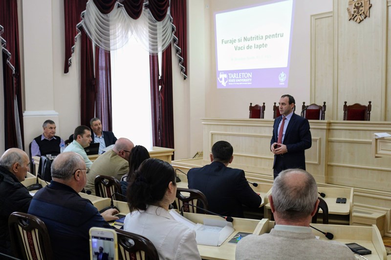 Domnul Valeriu Motelica, șef Direcție Agricultură și Alimentație, a prezentat invitații întrunirii, în special pe domnul Brandon Smith, profesor la Universitatea de Stat din Tarleton (SUA), totodată făcînd o analiză succintă a stării sectorului zootehnic din raion