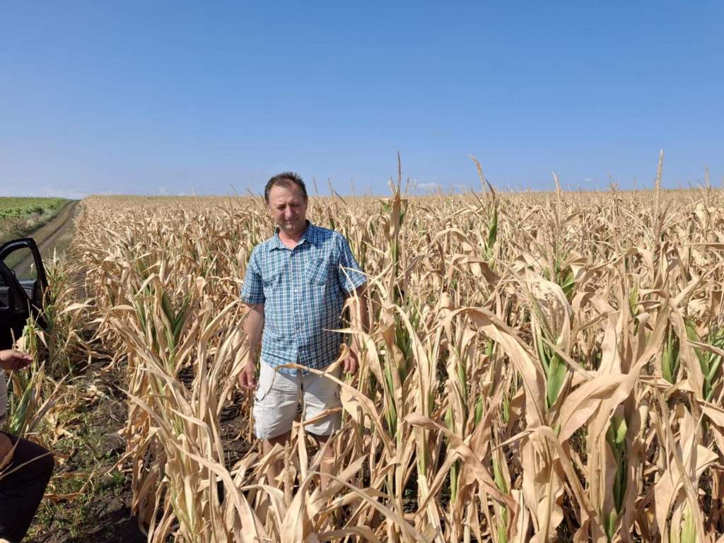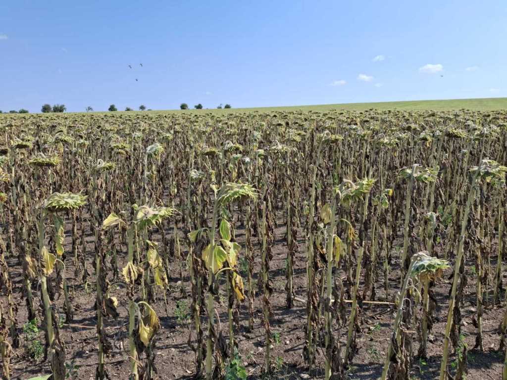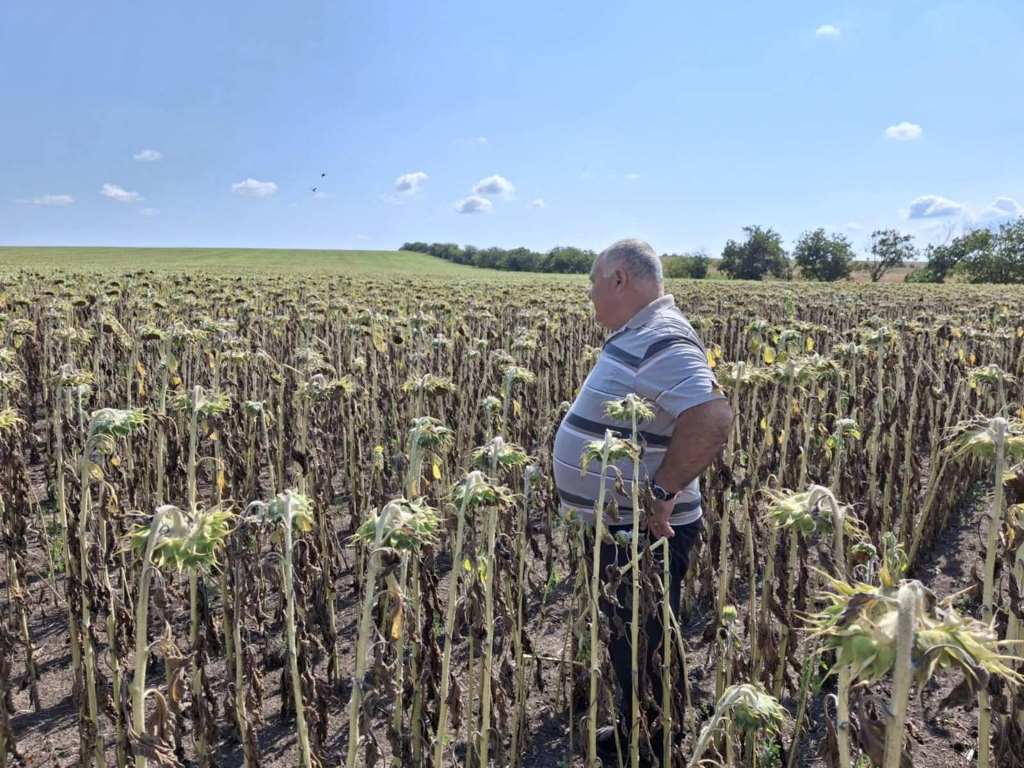 În urma evaluării terenurilor afectate de temperaturile foarte ridicate de peste +410C în timpul zilei, precum și temperaturile de noapte ce nu scădeau mai jos de +32-350C s-a constat că au afectate practic la 85-100% cultura porumbului și în proporție de 25-40% floarea soarelui.