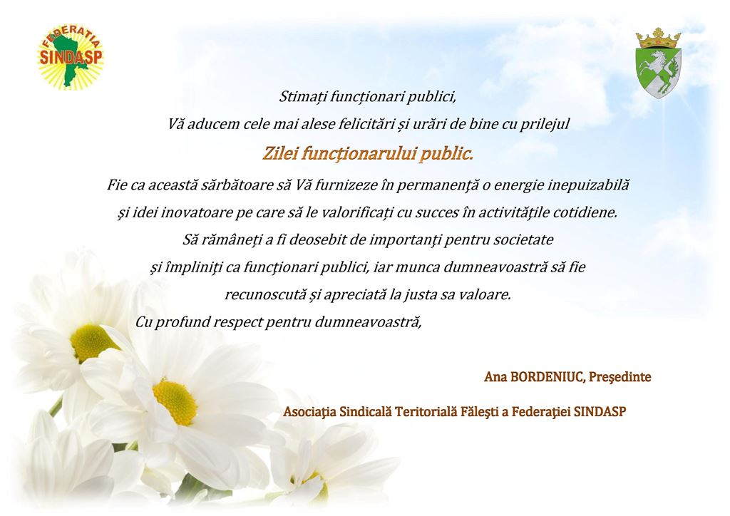 Cu ocazia sărbătorii dvs profesionale Vă adresez sincere felicitări, multă sănătate şi energie, linişte şi căldură în suflet şi în casele Dumneavoastră, succese şi realizări pe plan profesional şi personal.