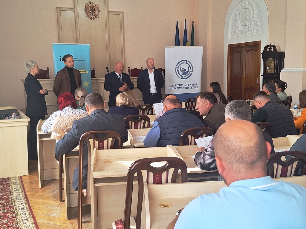 La eveniment au participat, domnii Vadim ROȘCA, președintele raionului, Vladislav KULMINSKI, director executiv Institutul pentru Inițiative Strategice, Mihai MOGÎLDEA, vice director Institutul pentru Politici și Reforme Europene, Eremei PRISEAJNIUC, expert în politici publice și doamna Tatiana NISTORICA, membru al Consiliului Economic al Primului ministru, președinte al Alianței pentru Lanțul Valoric Ecologic din Moldova.