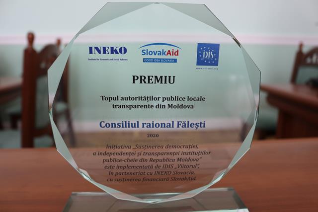 Astăzi, 28 iulie curent, reprezentanții Institutului pentru Dezvoltare și Inițiative Sociale ,,Viitorul” Domnul Veaceslav IONIȚĂ și ofițerul de comunicare Doamna Maria PROCOPCIUC, au întreprins o vizită la Consiliul raional Fălești pentru a oferi premiul de transparență.