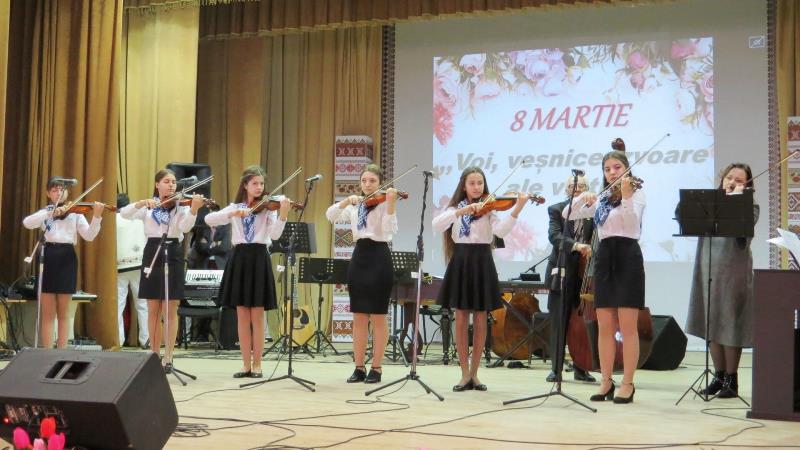 În cadrul spectacolului au fost omagiate femei din diverse domenii de activitate, cele mai reprezentative fiind elogiate în scenă, oferinduli-se mesaje de gratitudine și flori. Felicitările au fost însoțite de un program artistic vast și divers, la care au fost parte ansamblul de violoniști ai Școlii de Muzică din orașul Fălești, conducător Mihaela Mamai, acompaniator Nelea Matcovschi, ansamblul de dans popular „Favorit”, conducător Sergiu Burduja, ansamblul vocal „Mlădițe muzicale”, conducător Raisa Melinte, acompaniator Nelea Matcovschi, Costachi Andrei a fascinat publicul spectator cu interpretarea unui tango la acordeon, Anatol Chiorescu a încântat ascultătorii cu o poezie deosebită închinată soției, Orchestra Secției Cultură și Turism, dirijor Ion Vicol, împreună cu soliștii săi Constantin Ciubotaru, Grigore Onoico și Alexandra Patraș, formația Folclorică ,,Baștina”, conducător Oleg Matcovschi, Orchestra de muzică populară ,,Păunaș”, dirijor Vitalie Nedelcu, cu soliștii Alina și Elizaveta Calmuțchi, Francesca Cucuruzneac, Sergiu Cristian, Elena Dilion, Pavel Hodobină. Simpatia publicului și coșul de flori al Președintelui raionului a câștigat Elizaveta Calmuțchi, în vârstă de numai patru anișori, care și-a lăudat prin cântec „Bondița”.