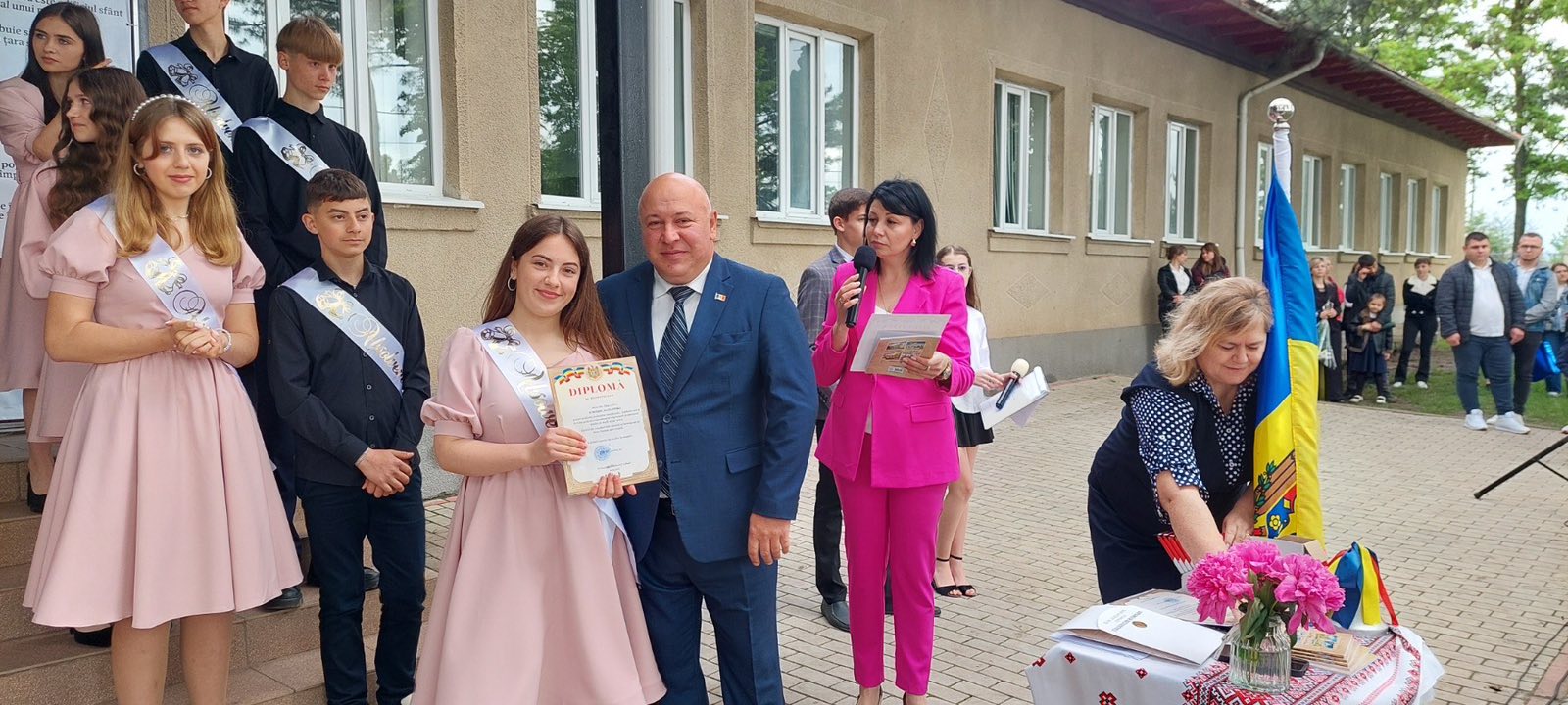 La evenimentul festiv a participat și Domnul Vadim ROȘCA, Președintele raionului, unde a transmis un mesaj de felicitare pentru cadrele didactice, elevi și părinți cu prilejul ultimului sunet.